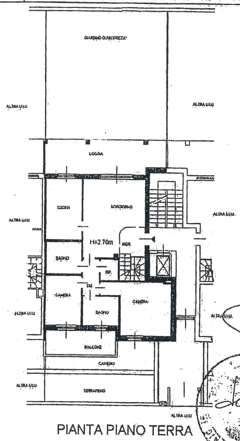 - piano terra di mq.94 circa composto da soggiorno, cucina abitabile, due ampie camere, doppi servizi, ripostiglio, giardino privato di circa mq.100 e balcone di mq.9;