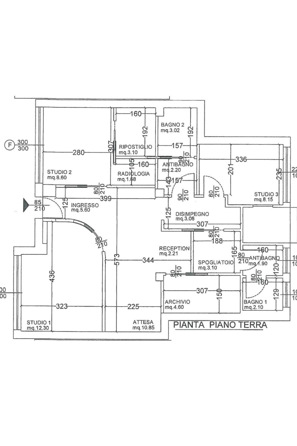 ingresso, sala d'attesa, tre studi, due bagni, archivio.